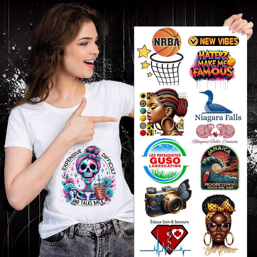 Use our DTF transfers to print any design on a variety of products, materials, and colors, all while ensuring remarkable durability. Bring your creative visions to life with confidence!